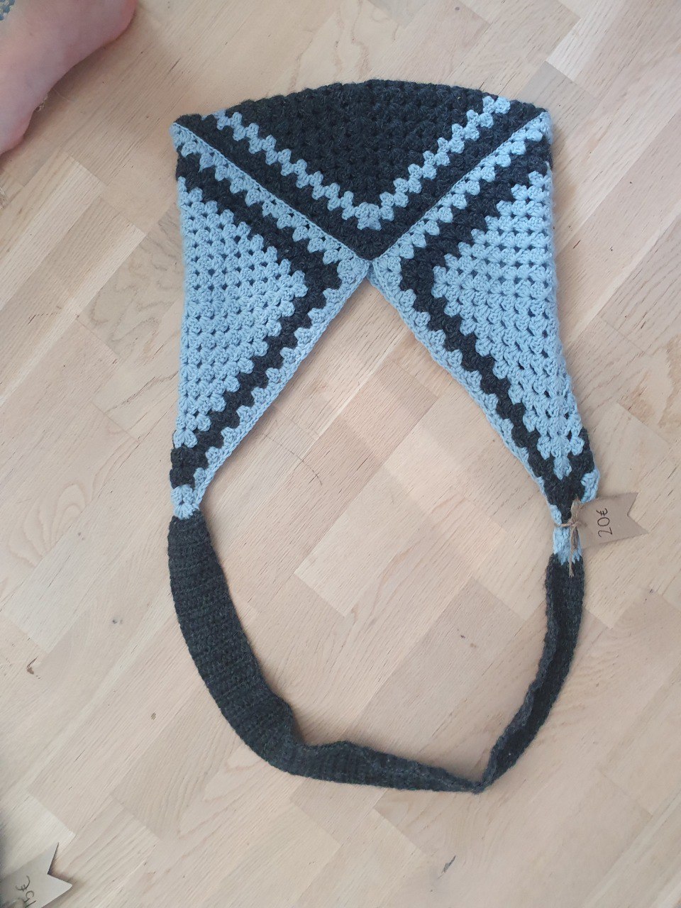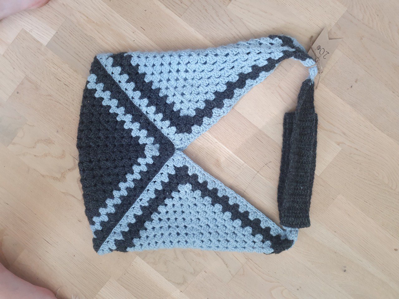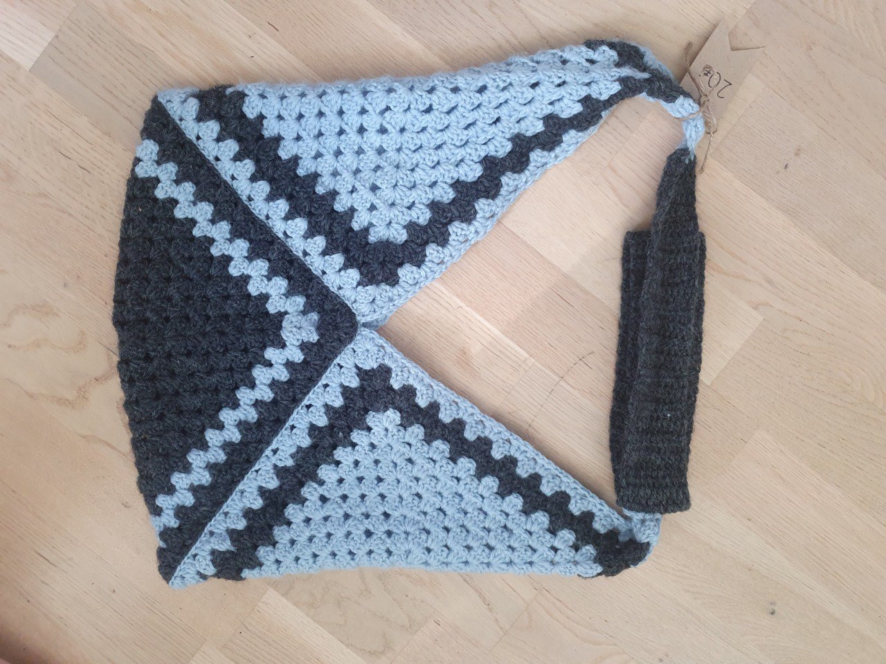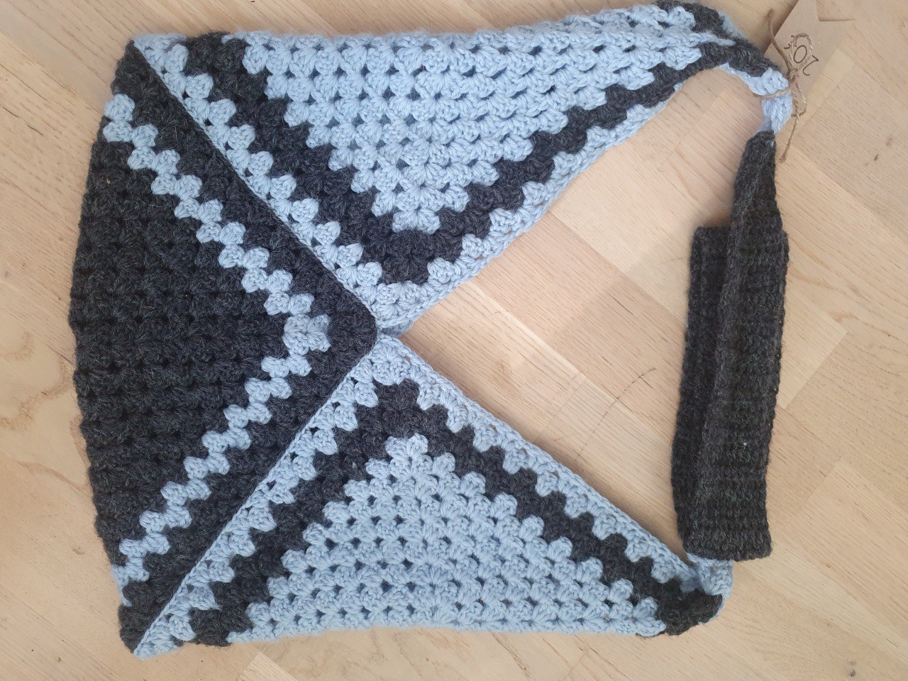 Surprisingly big crochet bag made with three granny squares. Fits perfectly books and notes.